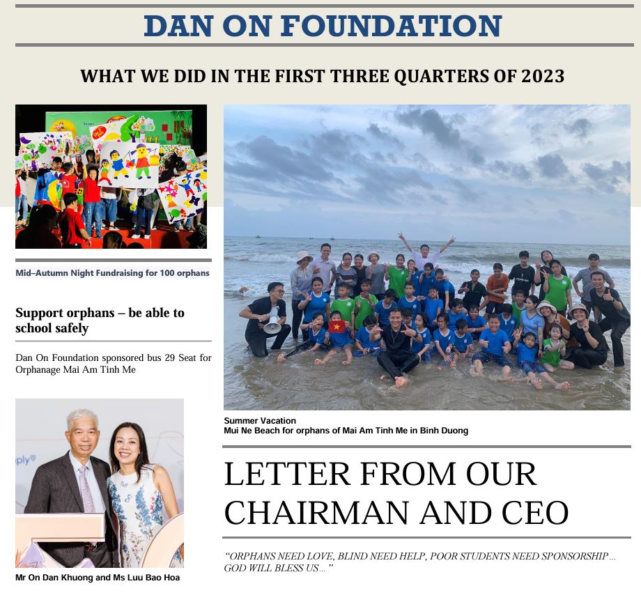 We have been busy this year from organizing recreational activities to providing work experience, and summer vacation to foster relationships. See our Q3 – 2023 Report for details.
